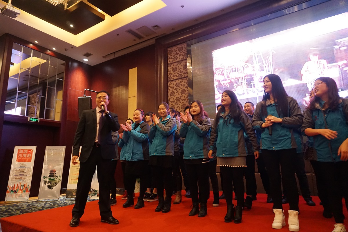 會(huì)議按兩大部分進(jìn)行,下午舉行春季新產(chǎn)品發(fā)布會(huì),公司副總經(jīng)理陳洛貴致開(kāi)幕詞,國(guó)內(nèi)部經(jīng)理、出境部經(jīng)理分別就16年春季專(zhuān)列、特色、出境等產(chǎn)品向廣大客戶作了詳細(xì)講解。本次新產(chǎn)品主要發(fā)布了5個(gè)主題系列產(chǎn)品,真實(shí)惠系列、真品質(zhì)系列、真純玩系列、縱橫中國(guó)之專(zhuān)列系列,以及瀟灑出境游系列。發(fā)布會(huì)上,總經(jīng)理鄭劍就公司團(tuán)隊(duì)建設(shè),發(fā)展規(guī)劃作了精彩演講。